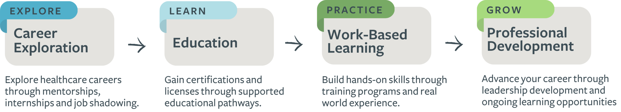 Programs that introduce students and community members to healthcare careers and pathways. Programs Include: • High School Mentorships • Summer Teen Camp • Non-Clinical Internships • Job Shadowing • Non-Nursing Clinicals